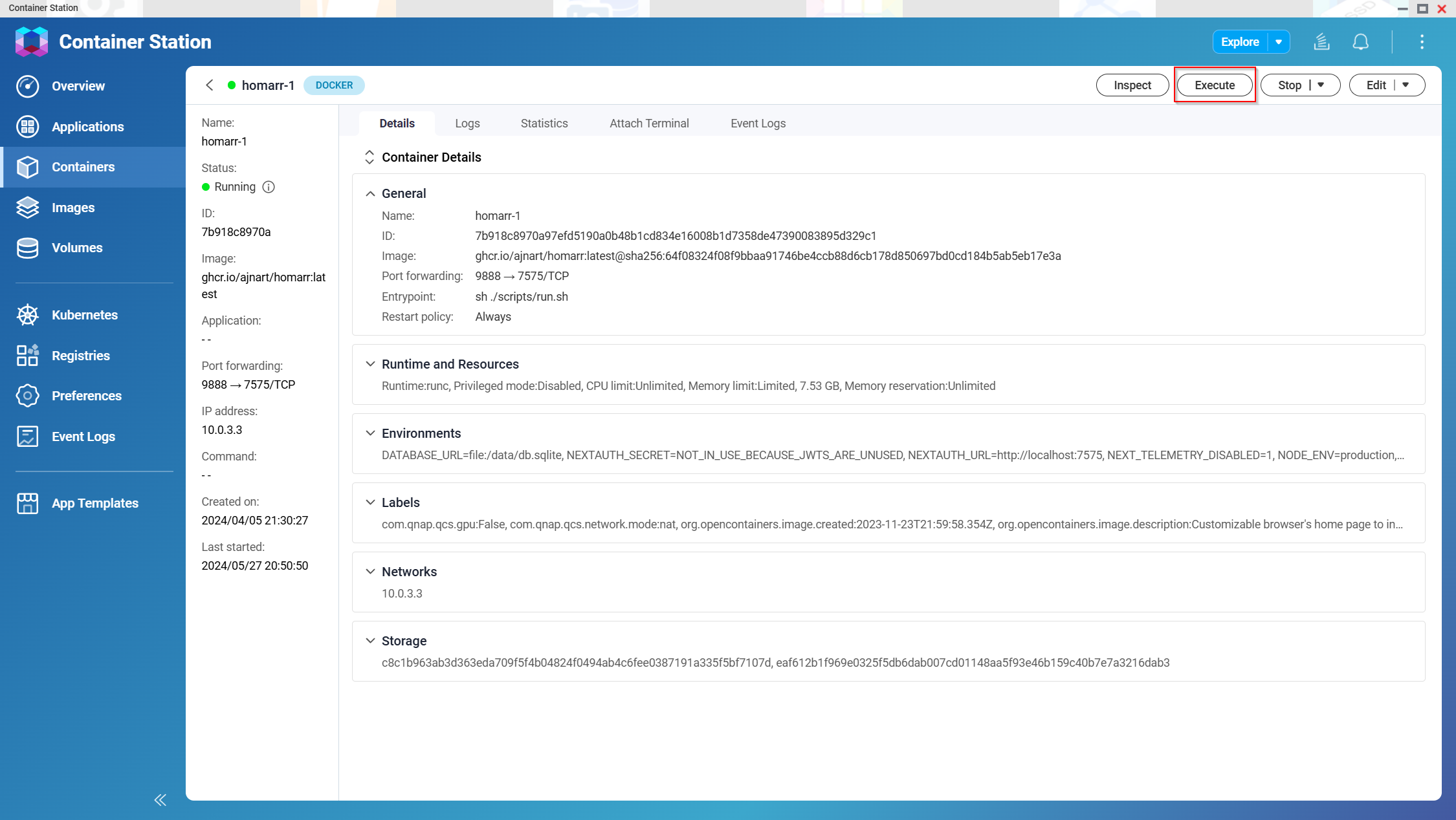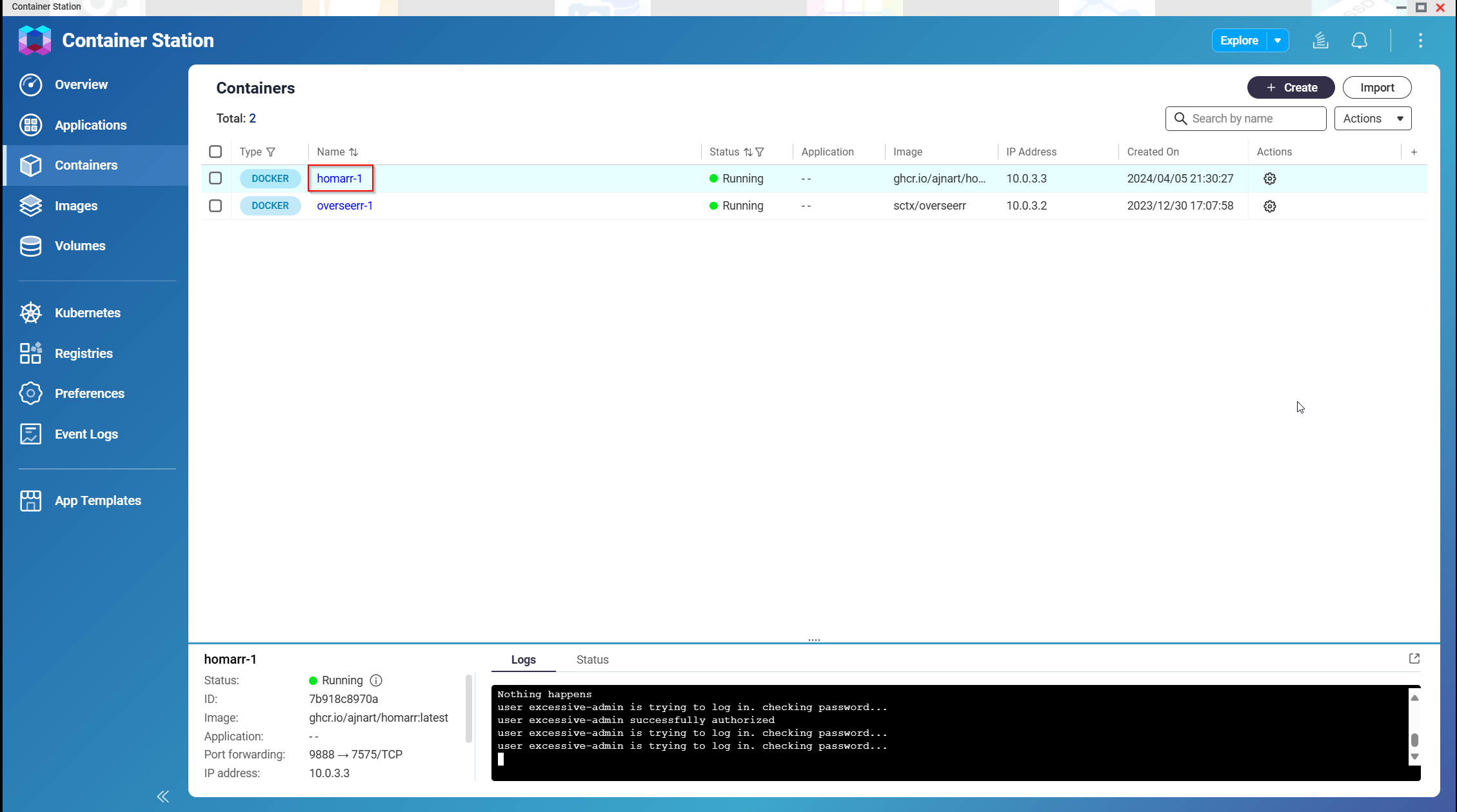 1. Open Container Station in the QNAP Web Interface