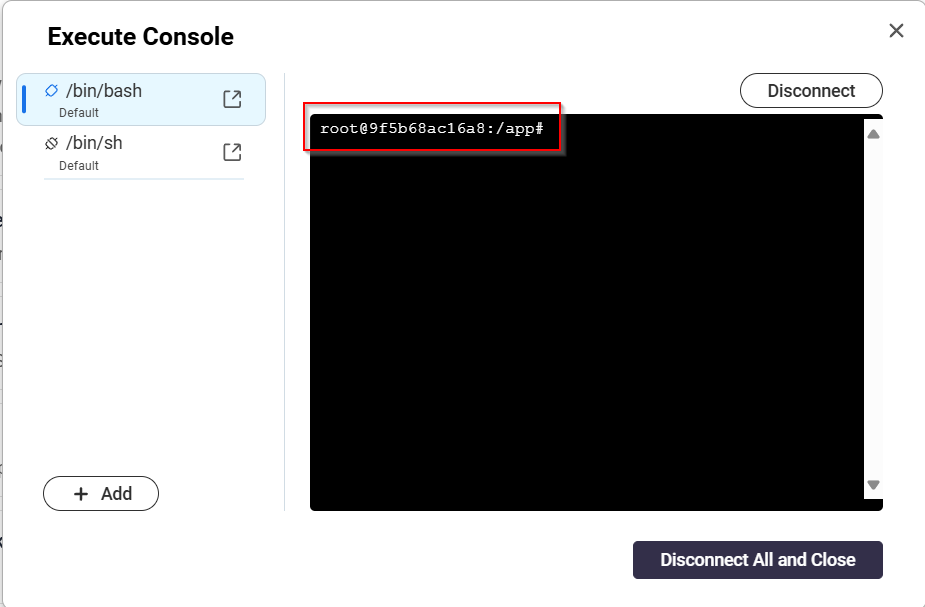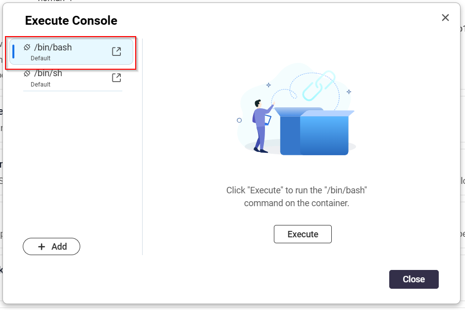5. Select /bin/bash and click Execute